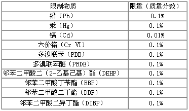 2015年6月4日,欧盟官方公报(OJ)发布RoHS2.0修订指令(EU)2015/863,正式将DEHP、DBP、BBP、DIBP列入附录Ⅱ限制物质清单中,至此附录Ⅱ共有十项强制管控物质,详见下表: