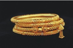 就是把黄金打制成极薄的金箔,包在以铜、银、锌、镍等为基体的材料上,加工成各种饰品给人以黄金相同的感觉。饰品上往往打24KF、18KF印记。
