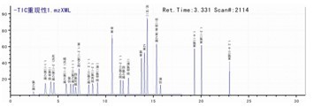 标样及处理后的样品在ESI+离子模式下进行分析,标准品质谱图如下。