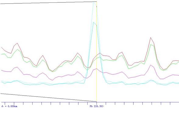 Pb的图谱(虚谱表示不同含量的谱峰)