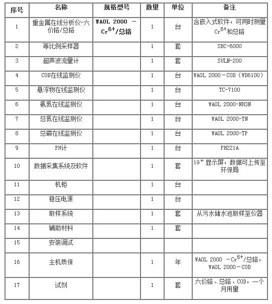为了实现整体皮革及其制品业污水污染物监测建设,我们建立整体皮革及其制品业污水污染物监测系统,具体系统配置如下: