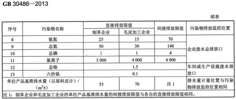 国家针对皮革工业重金属的主要污染状况,已经颁布了《制革及皮毛加工工业水污染物排放标准》(GB30486-2013)。