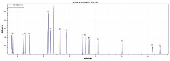 测定方式:TIC(FULL SCAN)定性(扫描范围:45-300amu),SIM模式定量。