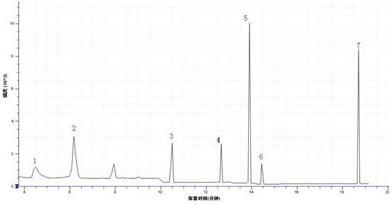 4.2 7种有机锡标准混合溶液衍生物总离子流监测图(TIC):