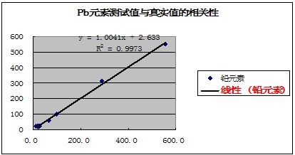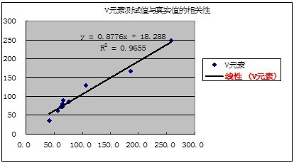 有关元素的测试值与真实值的相关性如下表示: