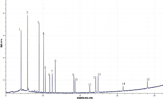 3.1 15种塑化剂混合标准溶液总离子流监测图(TIC)如下所示: