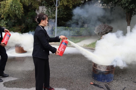 随后,部分人员还亲自手持灭火器参加现场灭火体验,使大家通过亲眼目睹、亲身参与灭火的过程,加深了记忆。